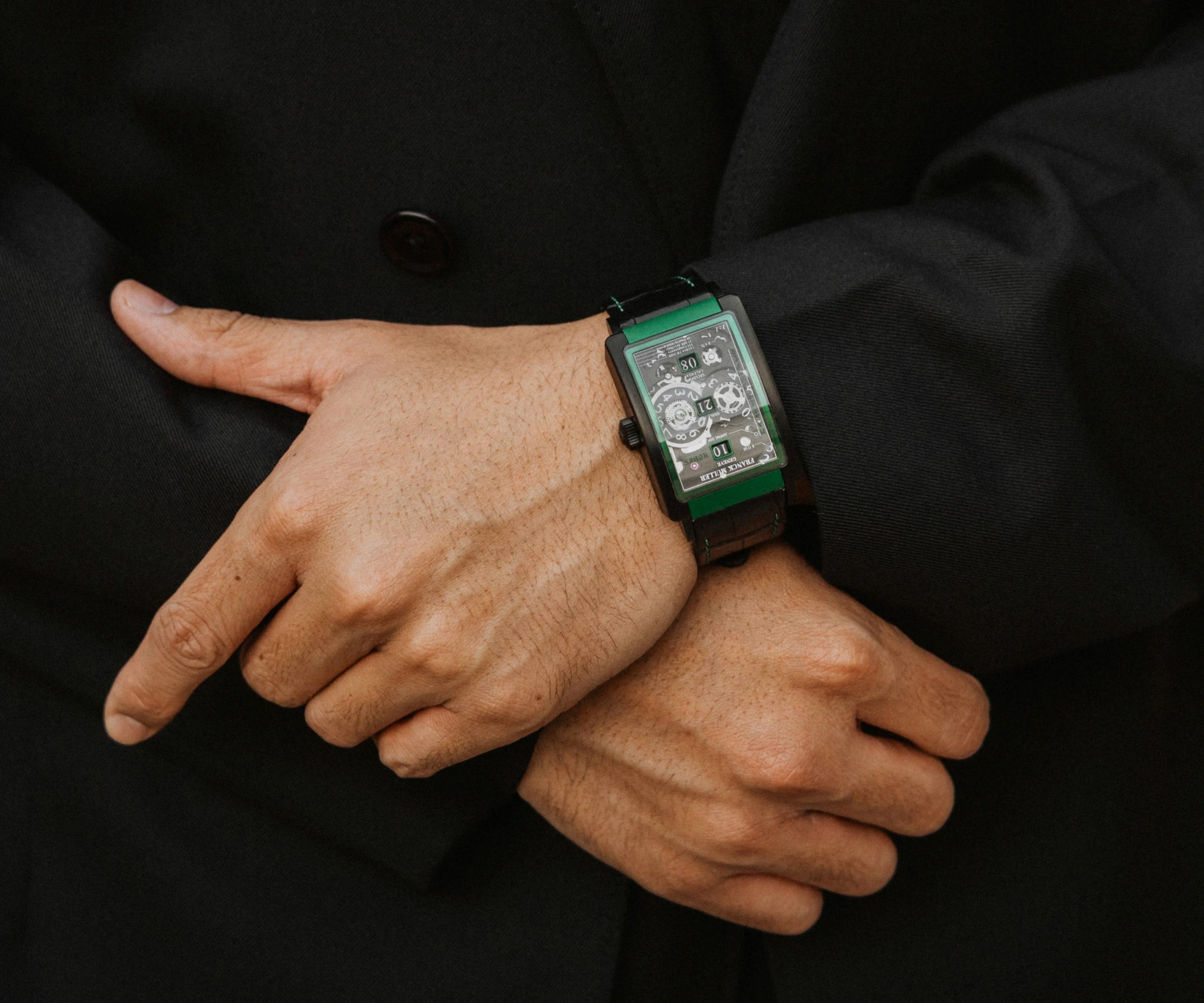 For those drawn to something more unconventional, the Franck Muller Long Island Evolution Master Jumper offers a striking alternative. Green enhances the watch’s architectural case and jumping-hour display, amplifying its avant-garde character.